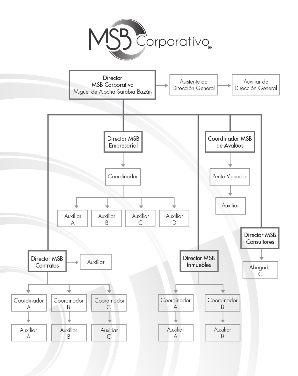 Somos un corporativo joven, capacitado y comprometido que agrupa diversas especialidades en torno al ámbito jurídico-empresarial y de negocios. Con una estructura organizacional dividida en 4 direcciones que se especializan en contratos, avalúos, consultoría y estructura inmobiliaria, respectivamente.